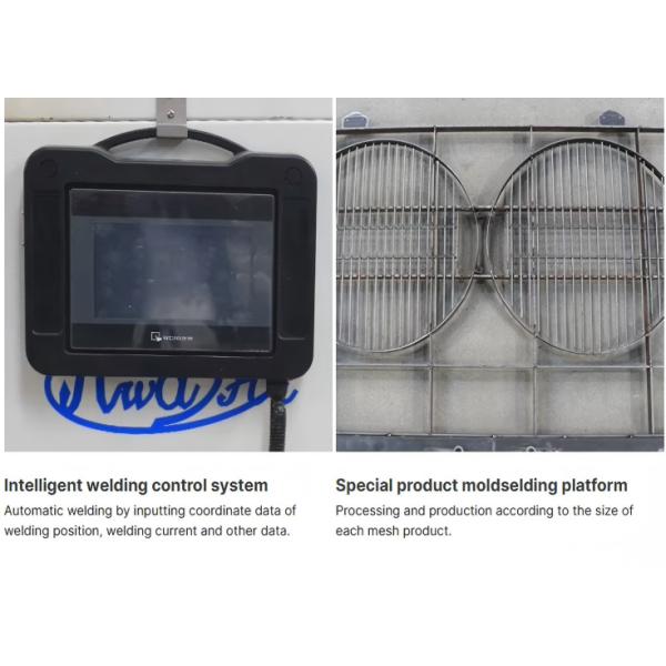 FEATURES 1.Adaptable to stainless steel/galvanized wires (width: 2000–2800 mm) with PLC-controlled welding cycles. Includes Turkish-language interface and CE certification2.Designed for cold storage applications, this AC-powered machine supports 12–15 cycles/minute with frost-resistant components. Compliant with GOST standards 3.Handles 4–8 mm wires with diamond-coated electrodes for humid environments. Includes Portuguese manuals and local technical support.4.Compact desktop design with air/water cooling options. Customizable templates for barbecue grills and security mesh, popular in Turkish markets.